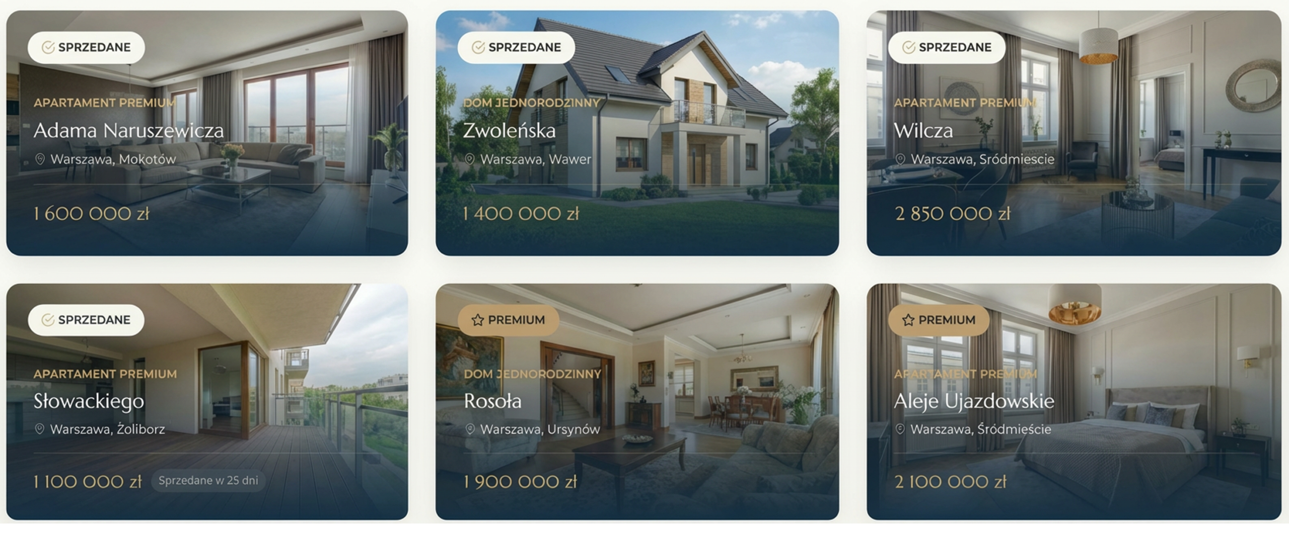 Nieruchomości o podwyższonym standardzie, położone w atrakcyjnych lokalizacjach, często z unikalnym widokiem.